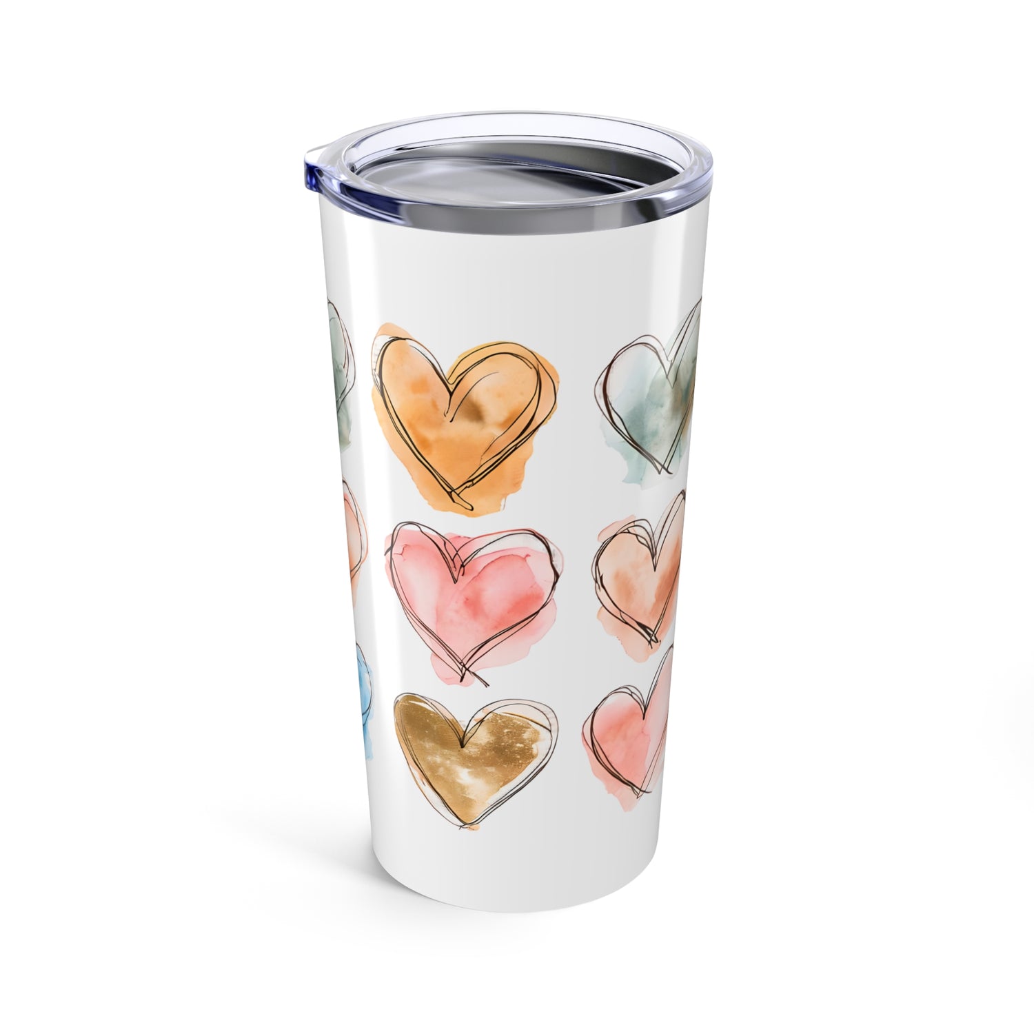 This 20oz Heart Design Tumbler is the perfect companion for anyone looking to enjoy their favorite beverages in style. The glossy finish and full-color decoration wraparound print give off a cheerful and vibrant vibe, making it ideal for morning coffee or afternoon cold drinks. Whether you're commuting to work or relaxing at home, this tumbler is a versatile and durable option.