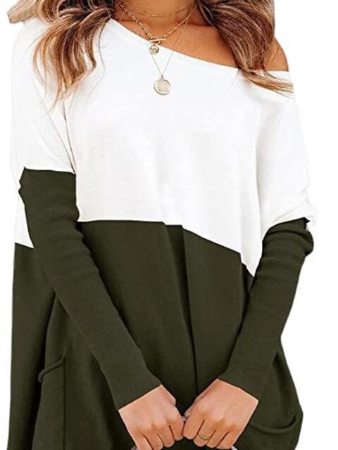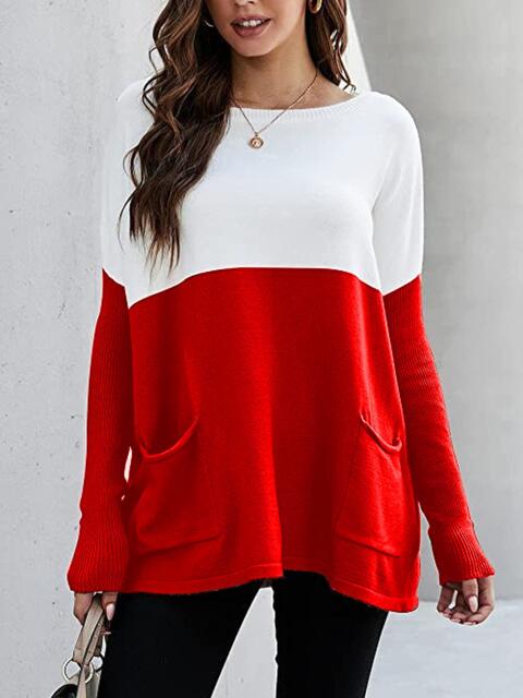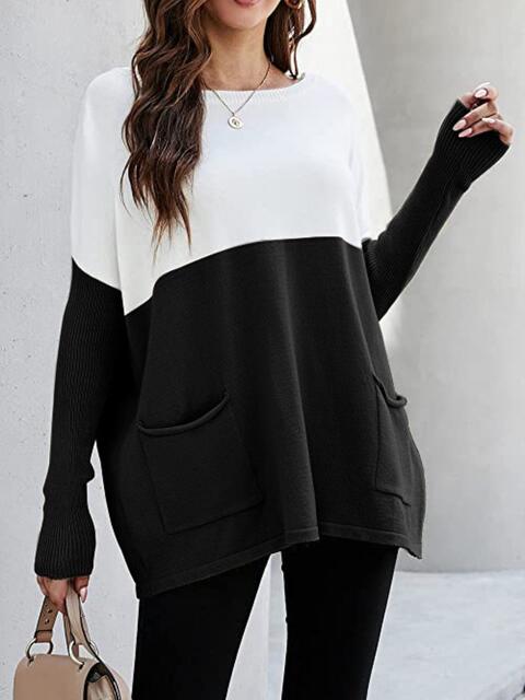 Two Tone Pullover Sweater with Pockets